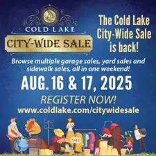 Welcome to the City-Wide Sale. Our annual event is a bargain hunter's dream and a great way for Cold Lake residents to find a new home for their old stuff! Every August, the City coordinates a city-wide network of garage sales, yard sales and sidewalk sales, where families and businesses can take advantage of free advertising and a huge influx of visitors to sell their treasures.