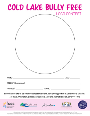 Entry forms are available at Cold Lake and District FCSS or online at coldlake.com. Entries will be judged by the Cold Lake Bully Free Committee.