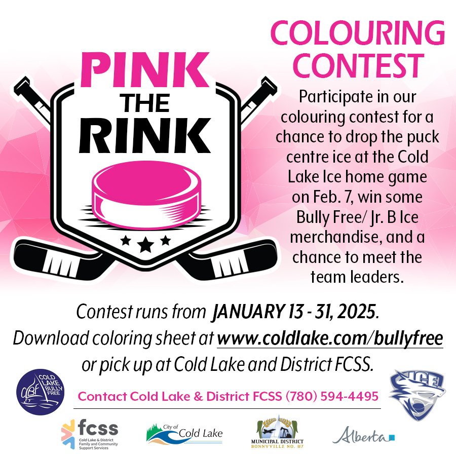 Every year, the FCSS Bully Free Committee teams up with a local hockey team to host a Pink in the Rink campaign. Fans are encouraged to come dressed in pink to a special hockey game and kids get to enter a colouring contest.