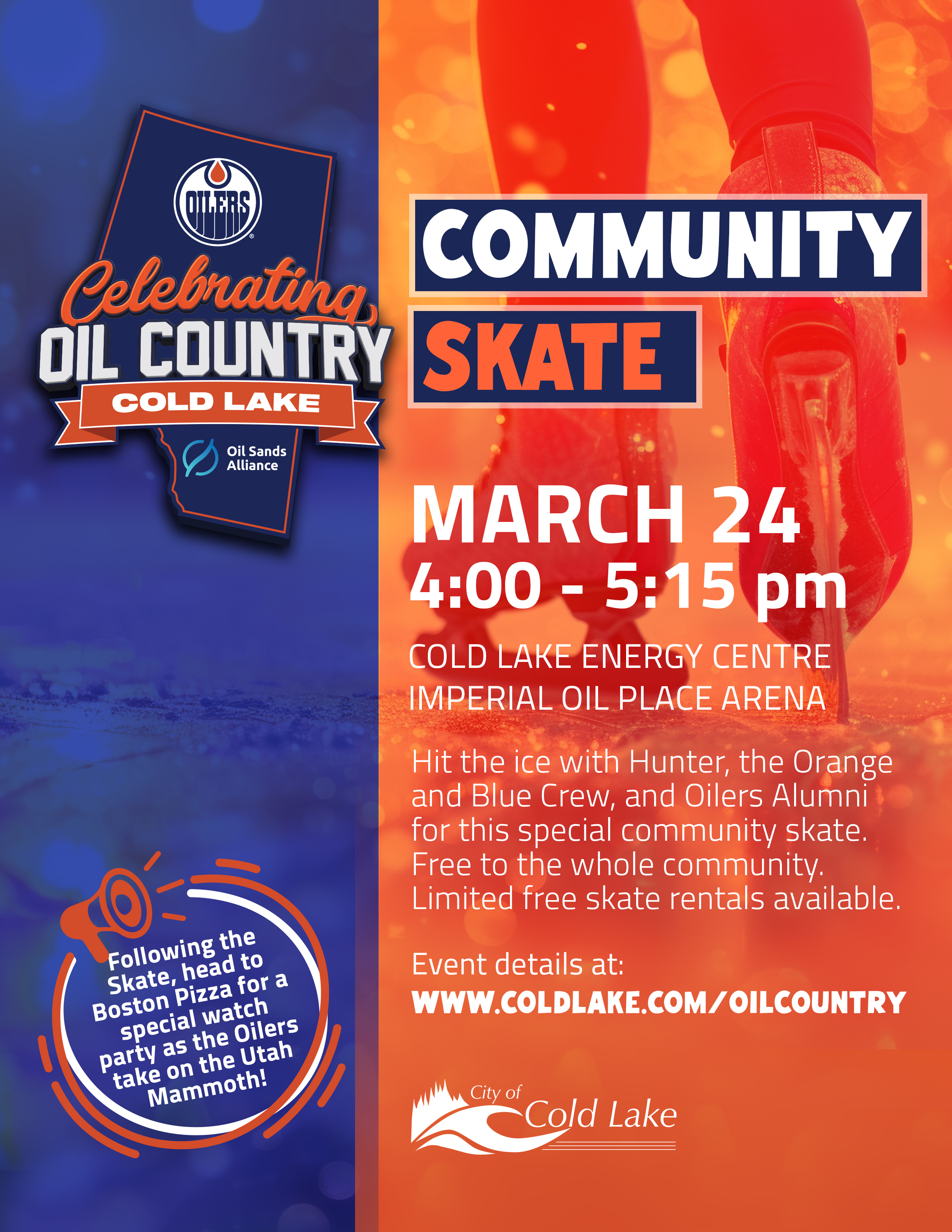 - Lace up the skates as our special guests hit the ice with members of the community for a causal skate (and maybe a selfie) at Imperial Oil Place Arena.