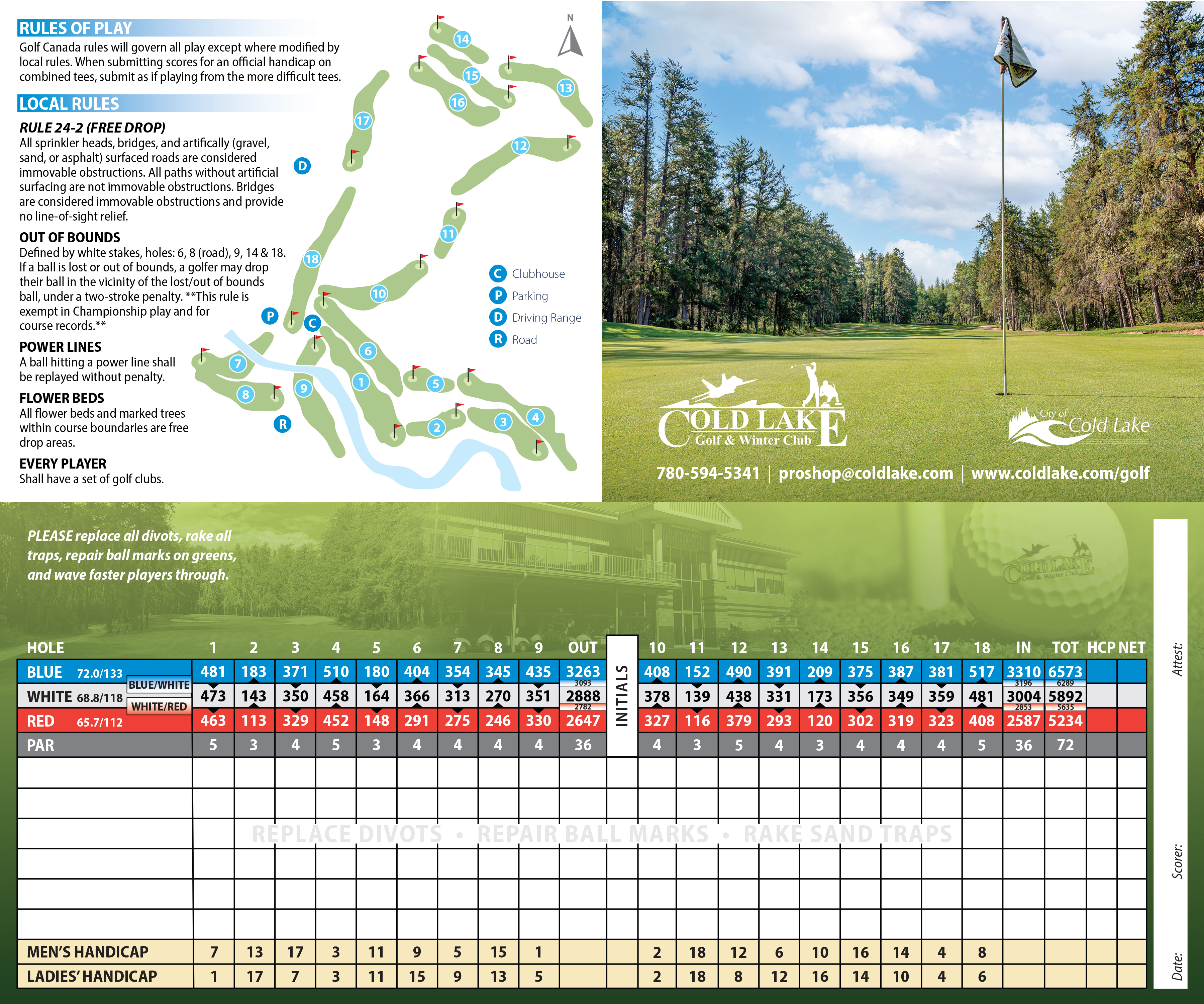 Looking to book a tee time, organize a tournament or speak to the Golf & Winter Club Programmer? Give us a call at 780-594-5341 ext. 1 or email proshop@coldlake.com.